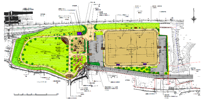 ・グラウンドゴルフ、サッカーなど様々なスポーツが楽しめる9,700平方メートルの多目的グラウンドを整備します。