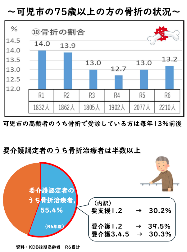 二次性骨折とは、一度骨折した後に再度骨折してしまうことです。一度骨折している人は、骨折を繰り返す可能性が高いといわれています。また、骨折により生活スタイルが大きく変化することで、介護が必要になる状態になることもあります。運動、食事、環境を整えることで、骨折を予防していきましょう。