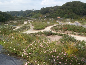 ここが「世界のバラ園」で、数多くの品種が見られます。
