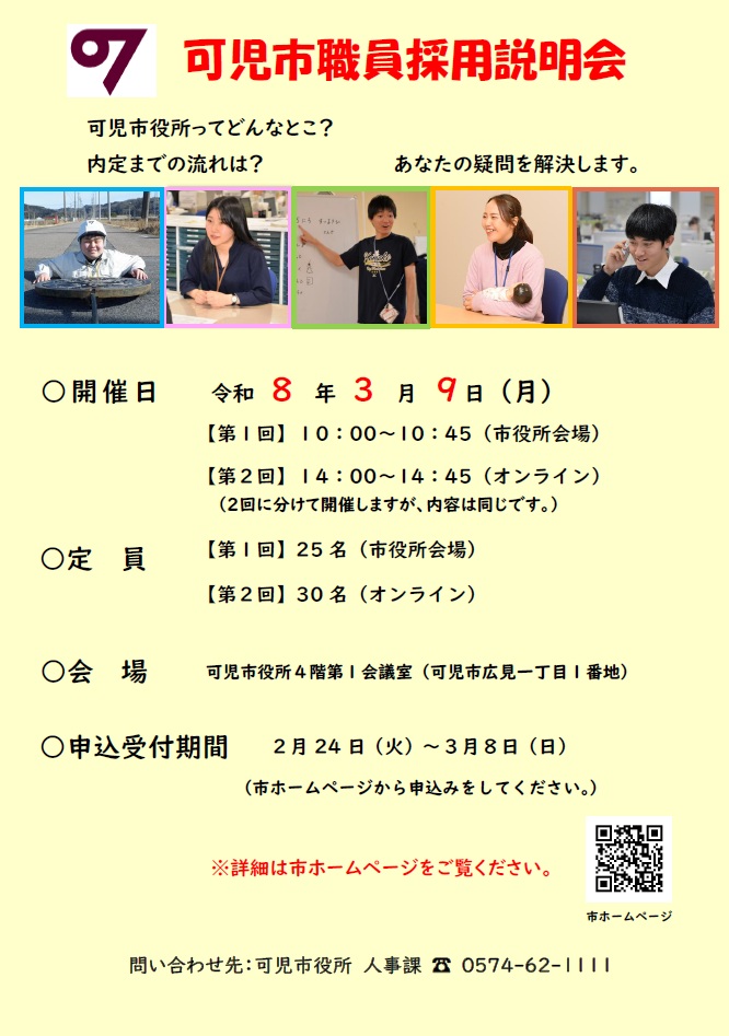 可児市役所の紹介、勤務条件等の説明、採用試験の説明、採用までの流れの説明、質疑応答 等