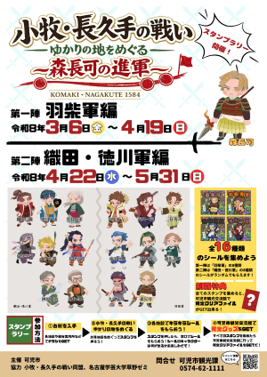 小牧・長久手の戦い同盟では、NHK大河ドラマ「豊臣兄弟」の放送を契機に関係市町の施設をめぐるスタンプラリー「小牧・長久手の戦い ゆかりの地をめぐる~森長可の進軍~」を開催します。