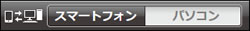 - 「スマートフォン表示」の状態から「パソコン表示」に切り替えるには、フッタ領域の上部に表示される下図の表示バーの「パソコン」ボタンを押します。すると、「パソコンモード」になり、画面の向きによらず「パソコン表示」になります。